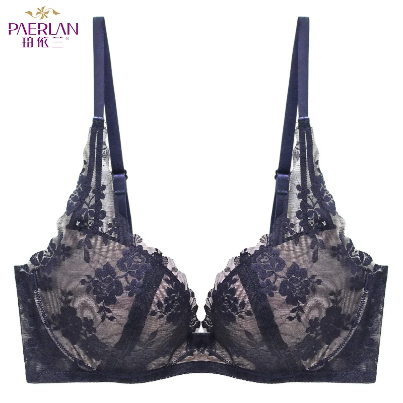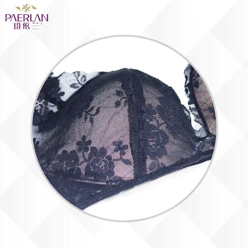 Hot Sale PAERLAN Seamless Wire Free Lace Floral Boobs Push Up black Bra Deep V Sexy Tow Hook-and-eye Boobs B